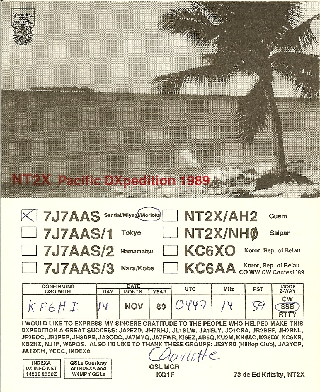 KF6HI QSO with 7J7AAS (click for QRZ info), information for above highlighted contact: