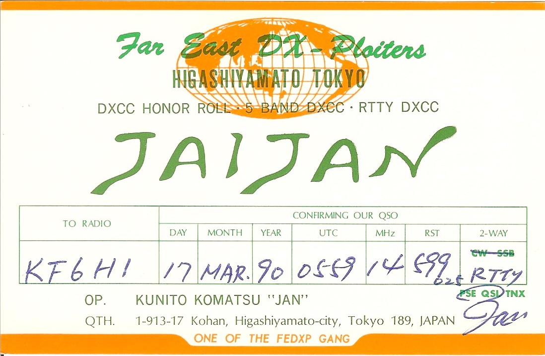 KF6HI QSO with JA1JAN (click for QRZ info), information for above highlighted contact: