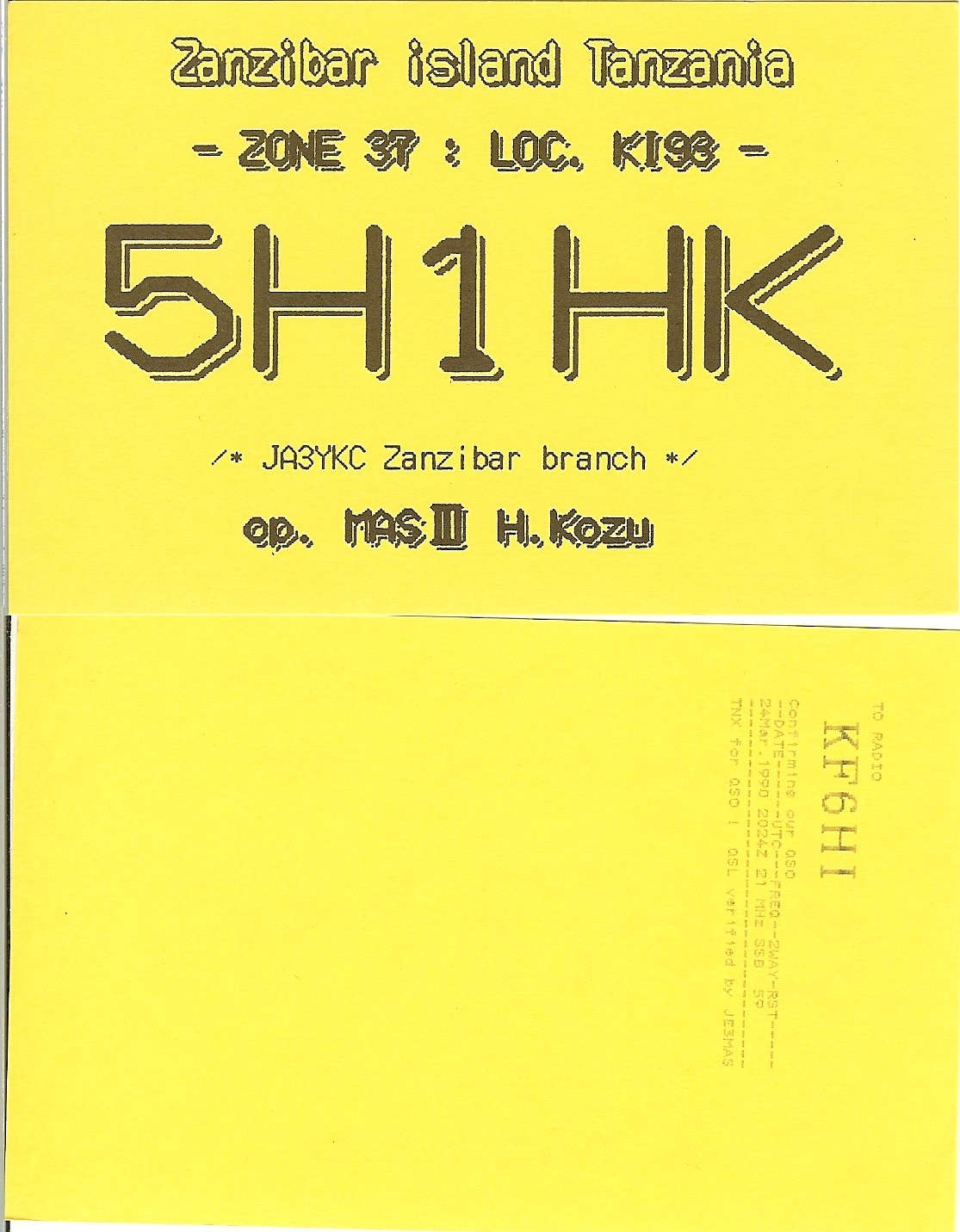 | Number of QSOs found on 21 MHz with Tanzania : 2 | |||||||||||||||||||||||||