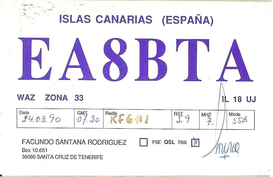 | EA8BTA | 1990-03-24 | 07:30 | SSB | Y | Y | N | N |
