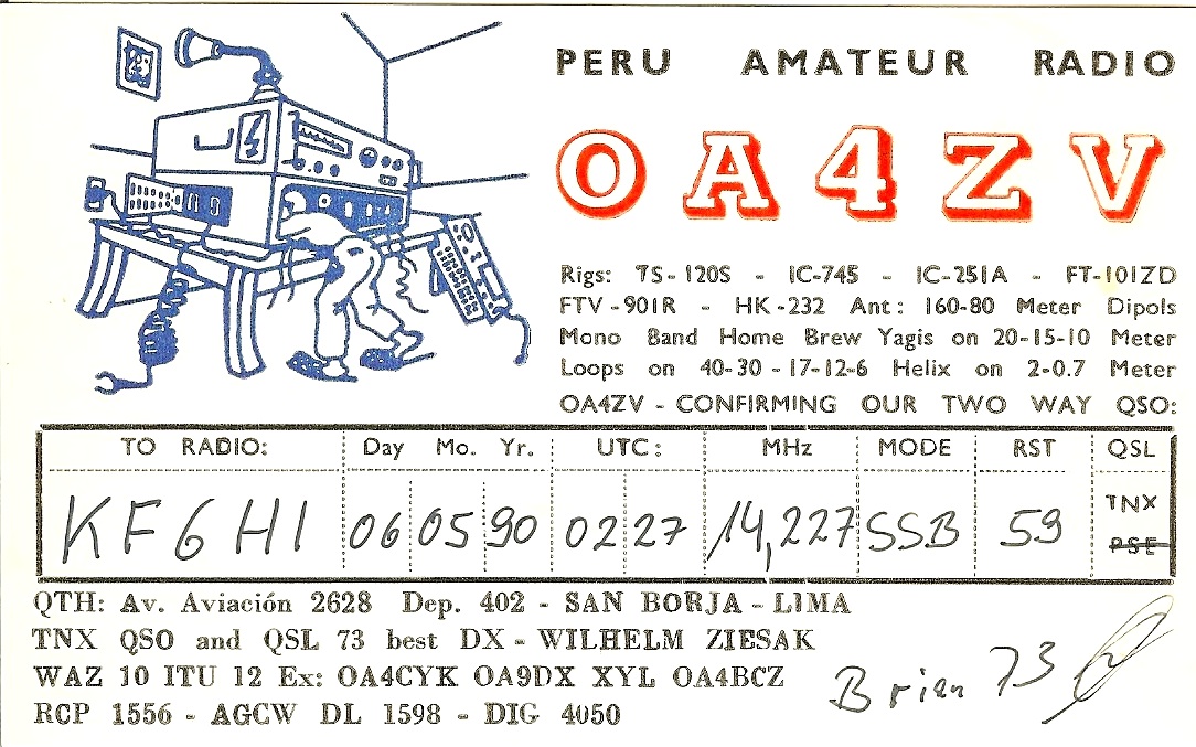 | OA4ZV | 1990-05-06 | 02:27 | SSB | Y | V | N | Y |