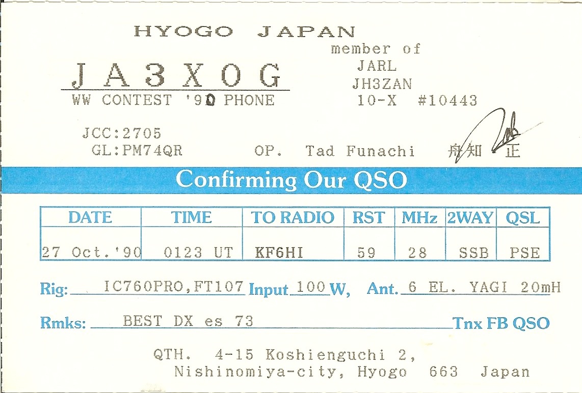 KF6HI QSO with JA3XOG (click for QRZ info), information for above highlighted contact: