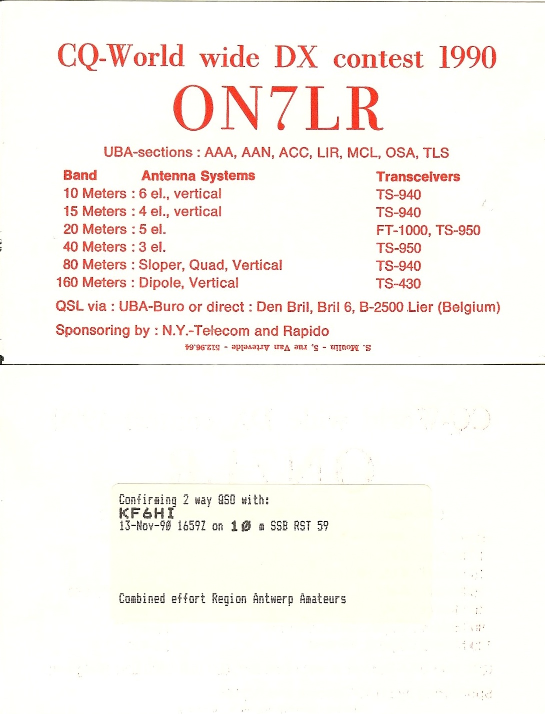 | ON7LR | 1990-10-27 | 17:00 | SSB | Y | Y | N | Y |