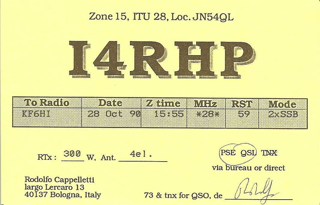 I4RHP | 1990-10-28 | 15:56 | SSB | Y | Y | N | Y |