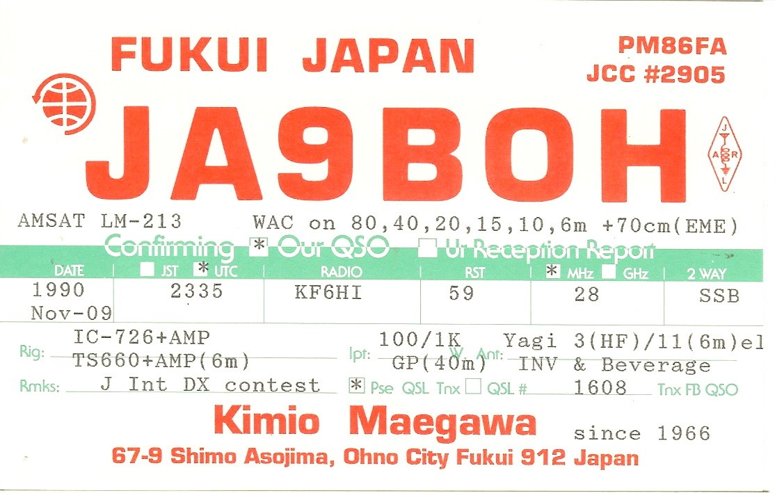KF6HI QSO with JA9BOH (click for QRZ info), information for above highlighted contact: