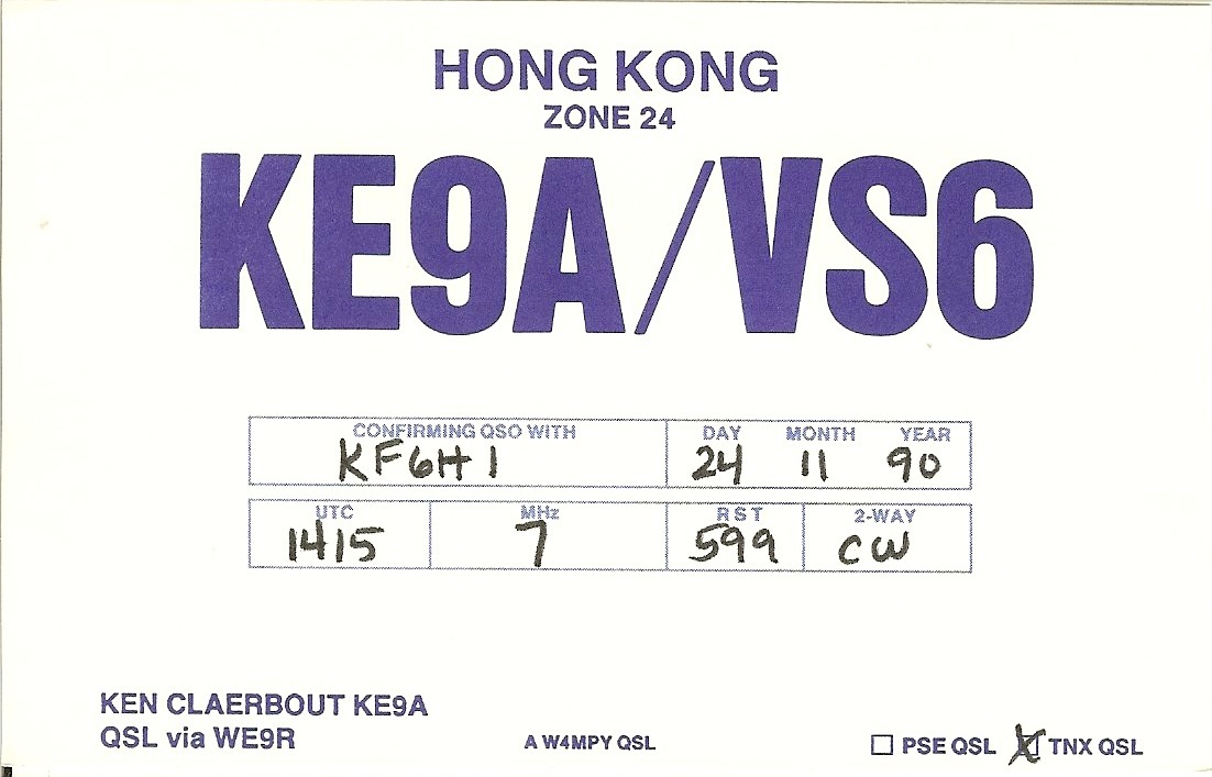 | VS6/KE9A | 1990-11-24 | 14:15 | CW | Y | V | N | N |
