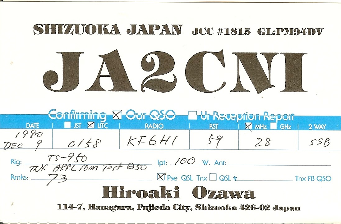 KF6HI QSO with JA2CNI (click for QRZ info), information for above highlighted contact: