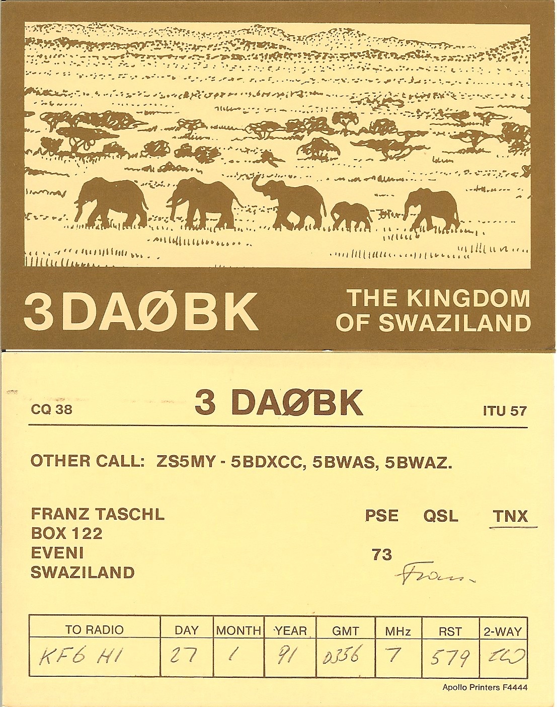 Number of QSOs found on 7 MHz with Swaziland : 1