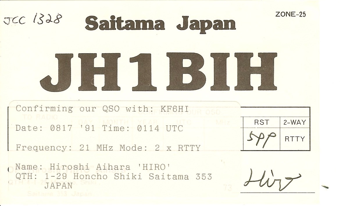 KF6HI QSO with JH1BIH (click for QRZ info), information for above highlighted contact:
