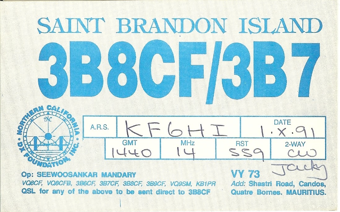 KF6HI QSO with 3B7/3B8CF (click for QRZ info), information for above highlighted contact: