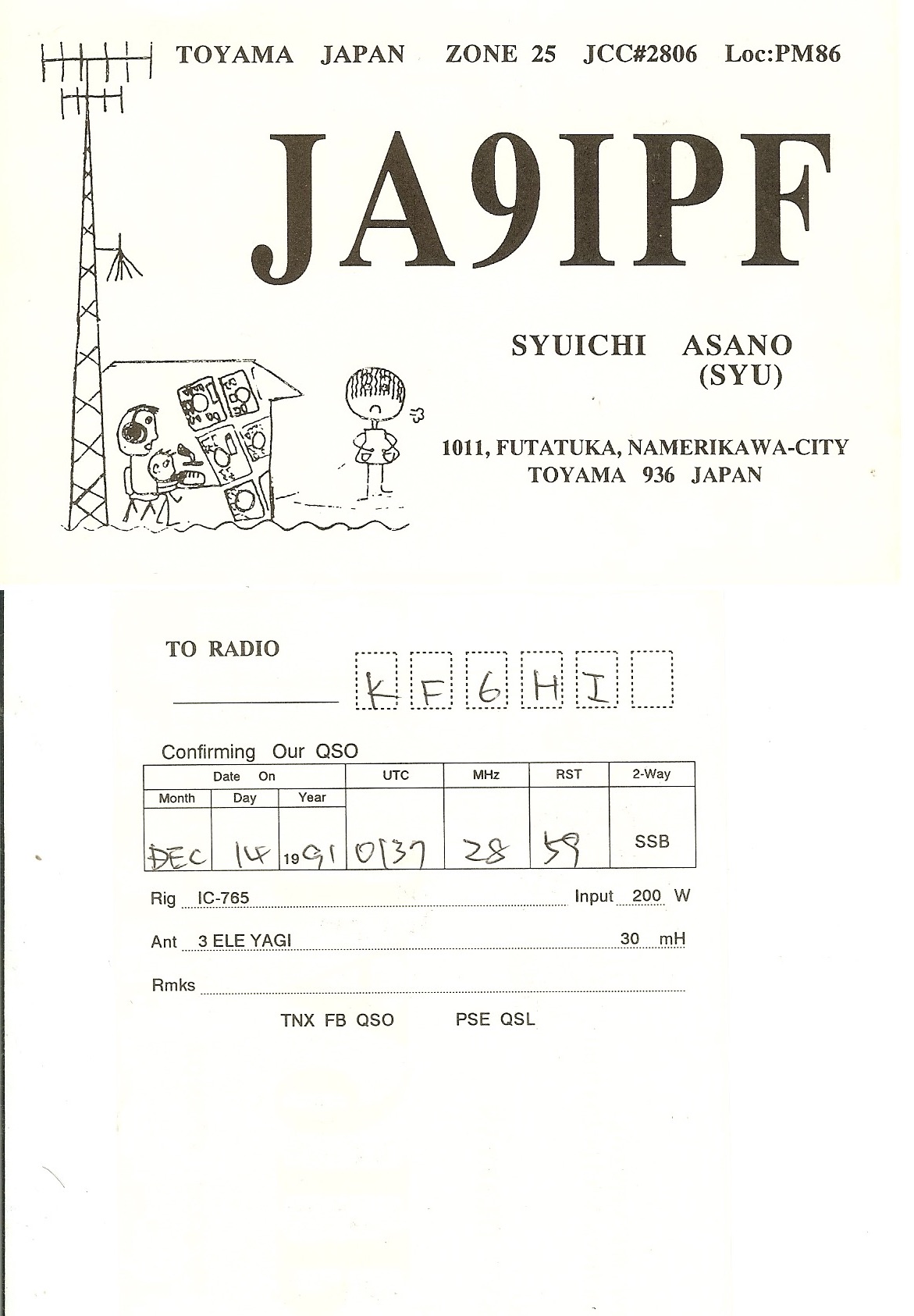 KF6HI QSO with JA9IPF (click for QRZ info), information for above highlighted contact: