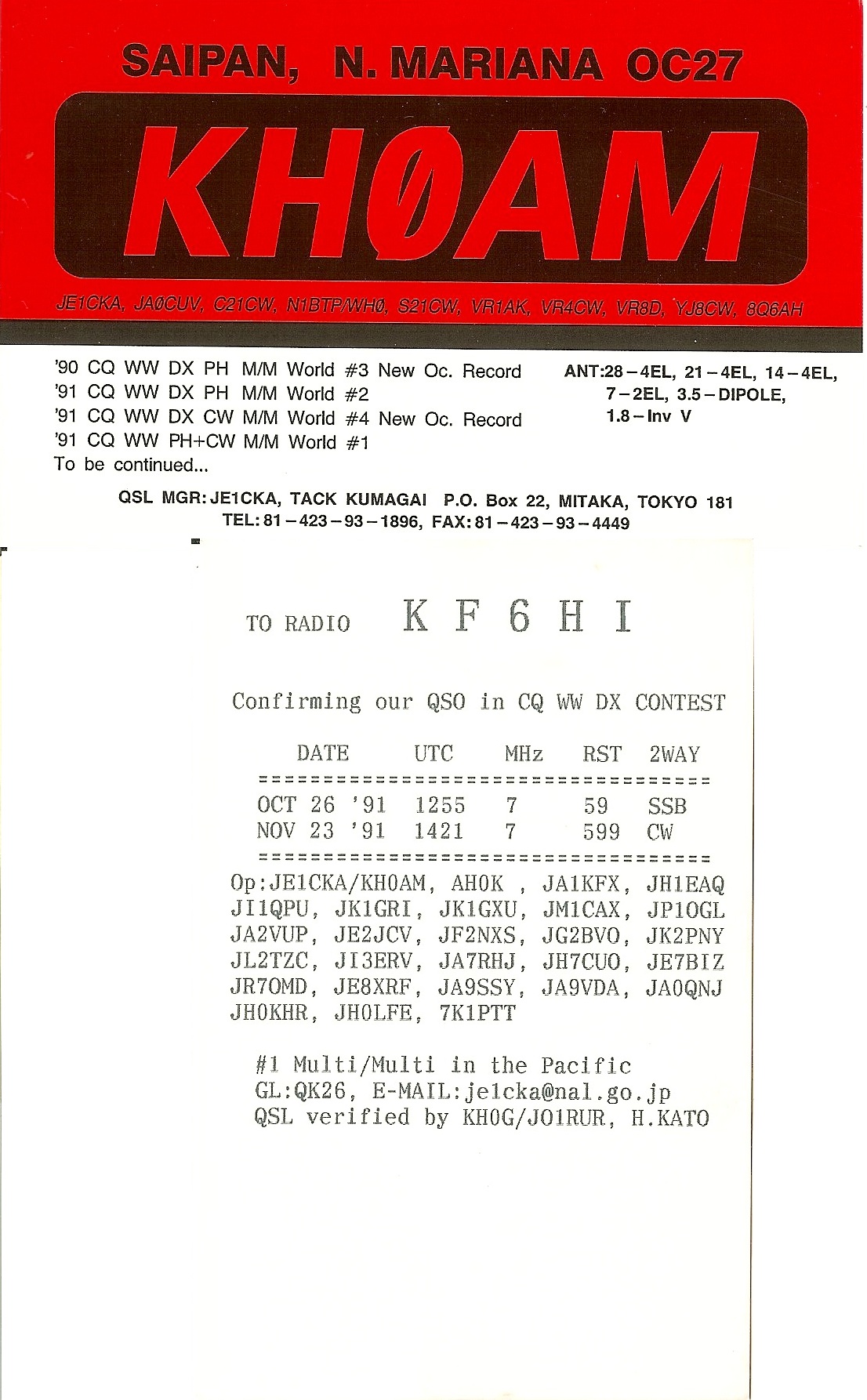KH0AM | 1991-11-23 | 14:22 | CW | N | Y | Y | N |