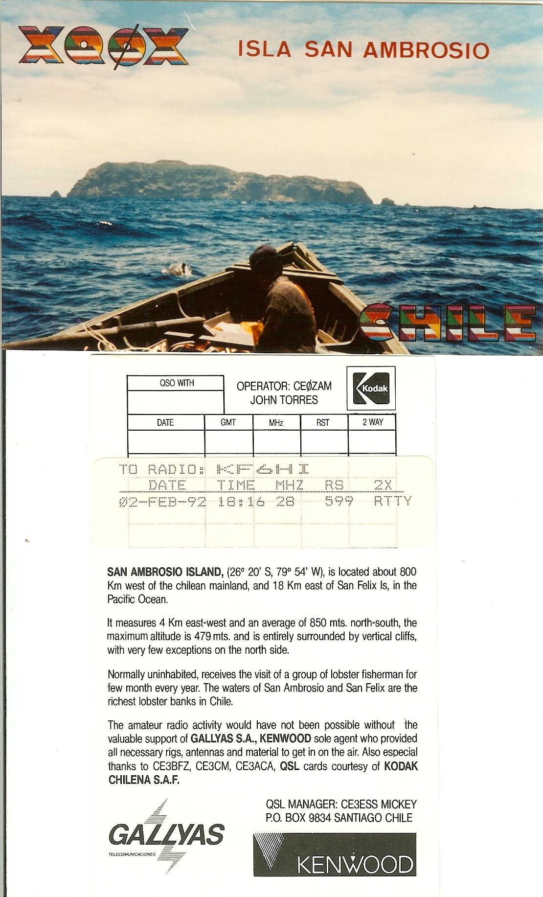 | Number of QSOs found on 28 MHz with San Felix & San Ambrosio : 2 | |||||||||||||||||||||||||