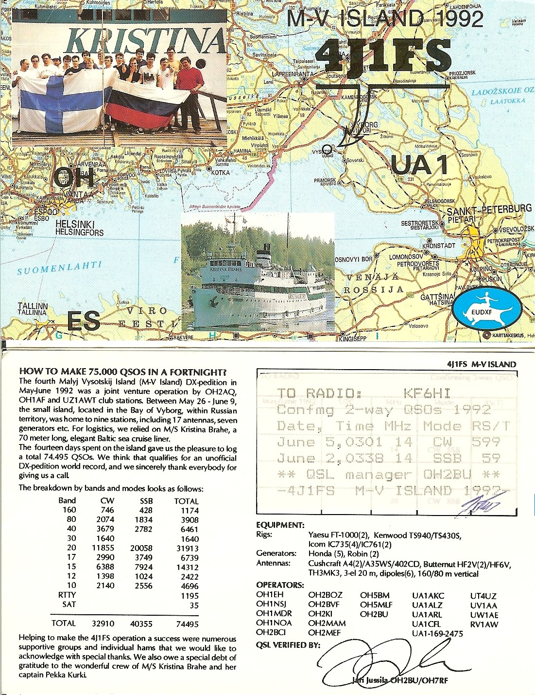 KF6HI QSO with 4J1FS (click for QRZ info), information for above highlighted contact: