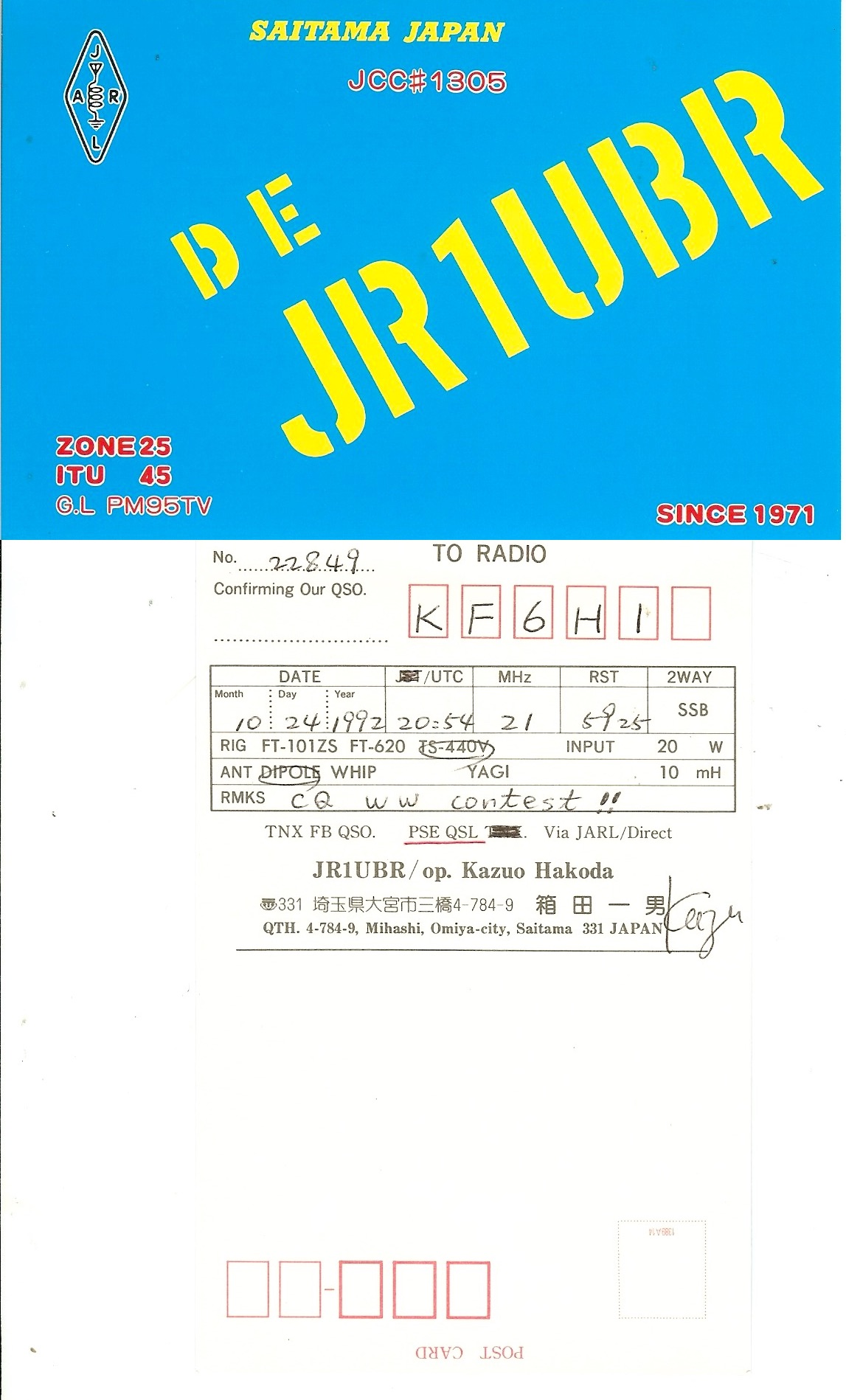 KF6HI QSO with JR1UBR (click for QRZ info), information for above highlighted contact: