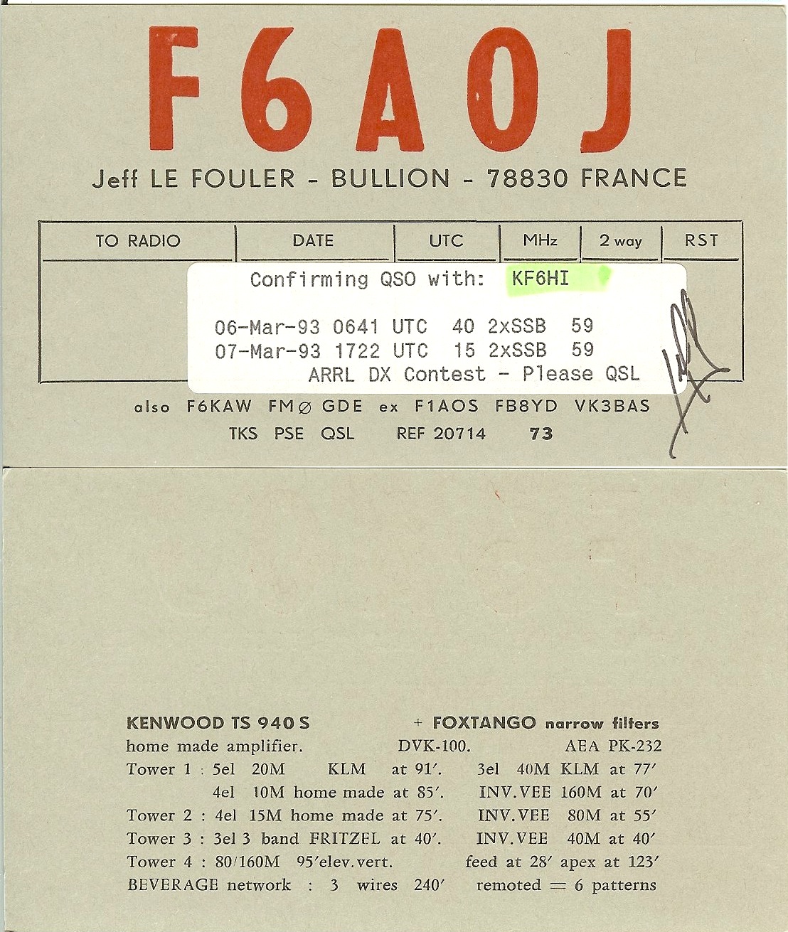 KF6HI QSO with F6AOJ (click for QRZ info), information for above highlighted contact: