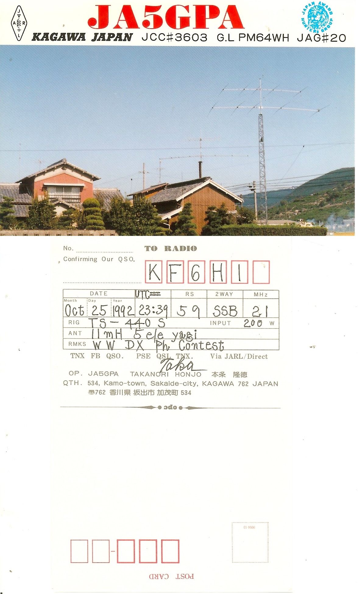 KF6HI QSO with JA5GPA (click for QRZ info), information for above highlighted contact:
