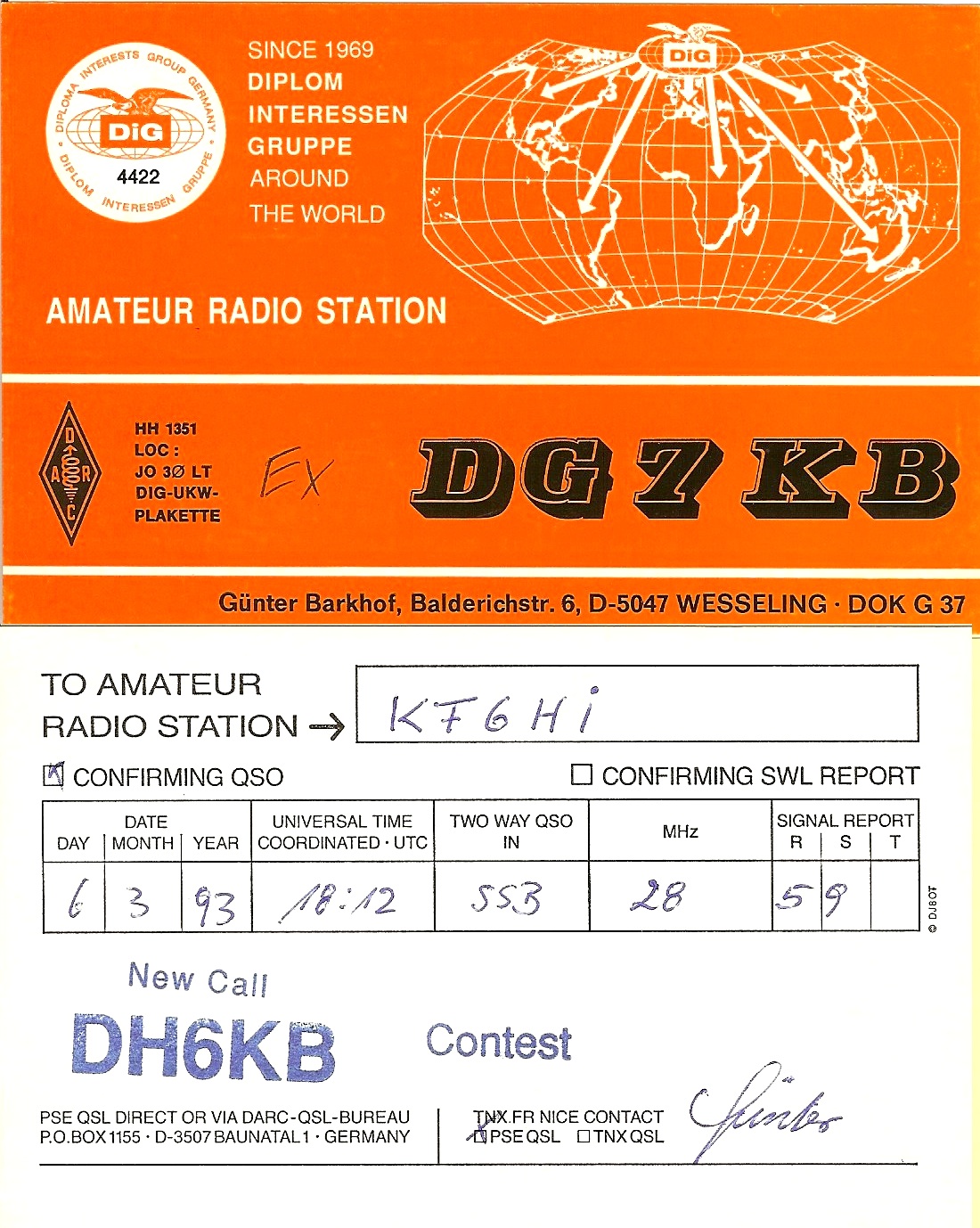 KF6HI QSO with DH6KB (click for QRZ info), information for above highlighted contact: