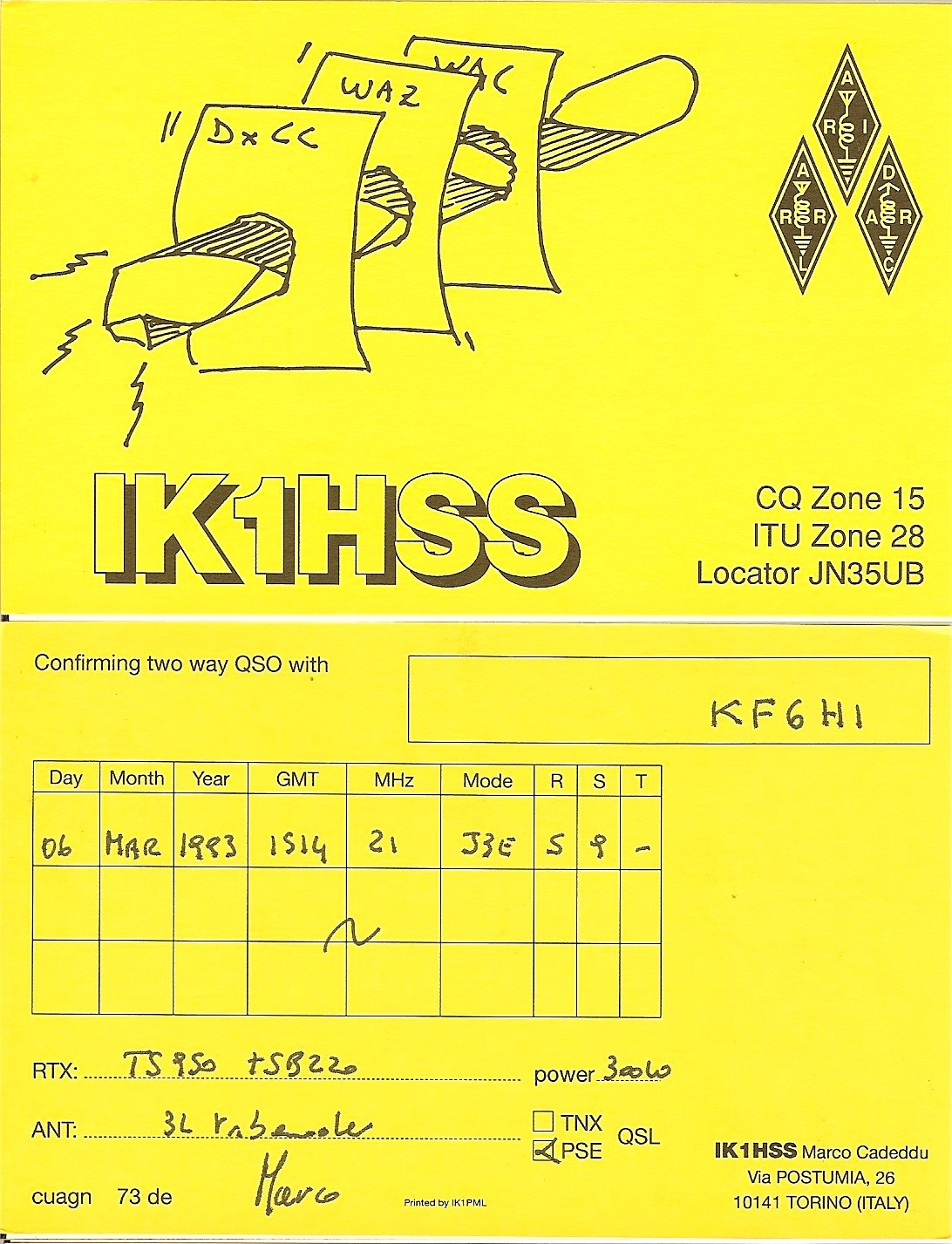 KF6HI QSO with IK1HSS (click for QRZ info), information for above highlighted contact: