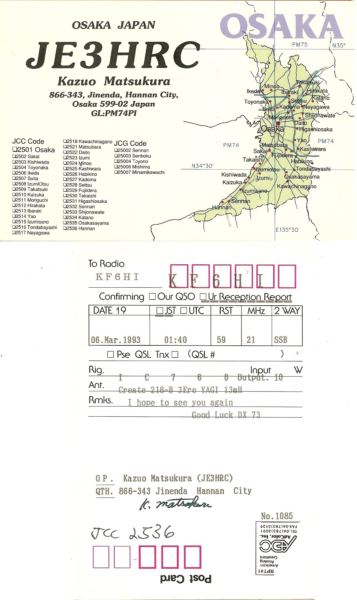 KF6HI QSO with JE3HRC (click for QRZ info), information for above highlighted contact: