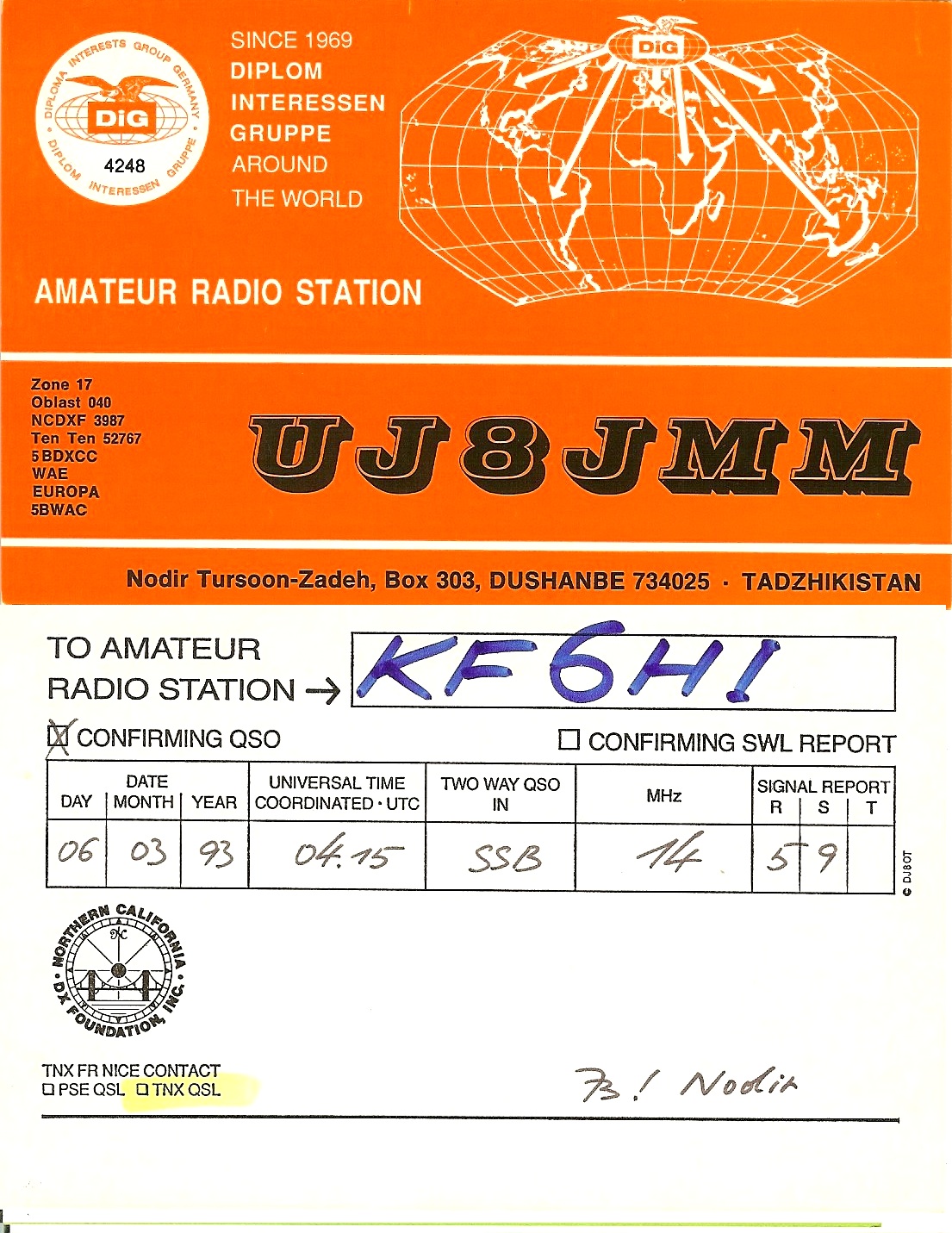 Number of QSOs found on 14 MHz with Tajikistan : 2 | |||||||||||||||||||||||||