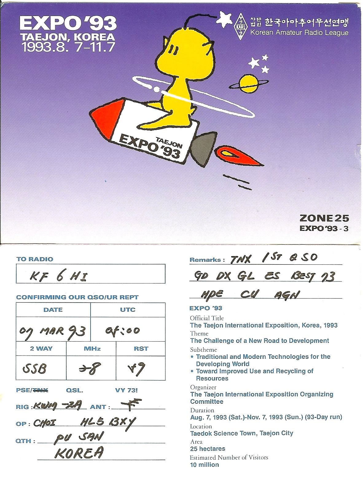 HL5BXY | 1993-03-07 | 01:51 | SSB | Y | Y | N | N |