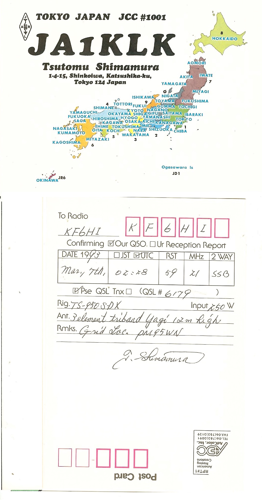 KF6HI QSO with JA1KLK (click for QRZ info), information for above highlighted contact:
