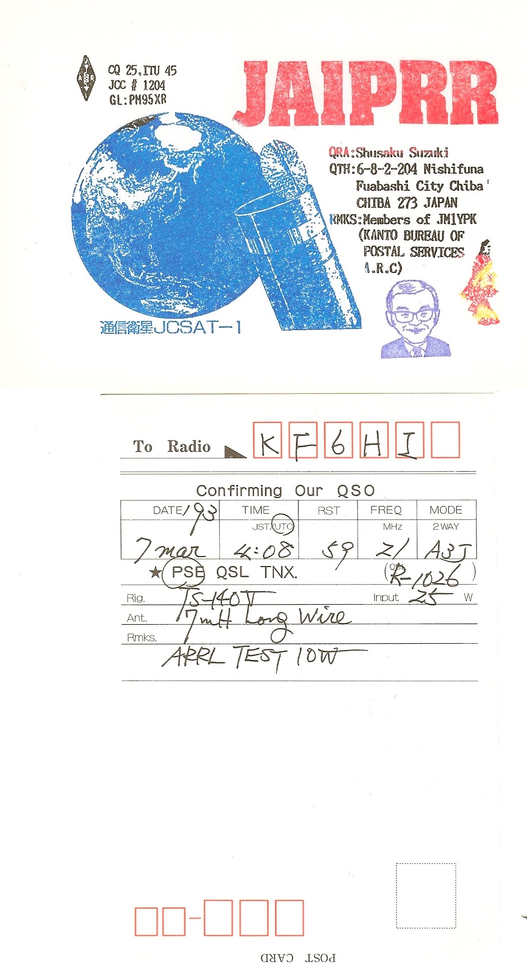 KF6HI QSO with JA1PRR (click for QRZ info), information for above highlighted contact: