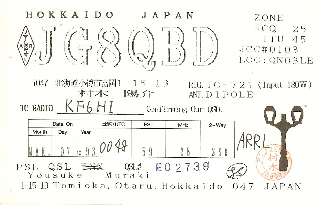 KF6HI QSO with JG8QBD (click for QRZ info), information for above highlighted contact:
