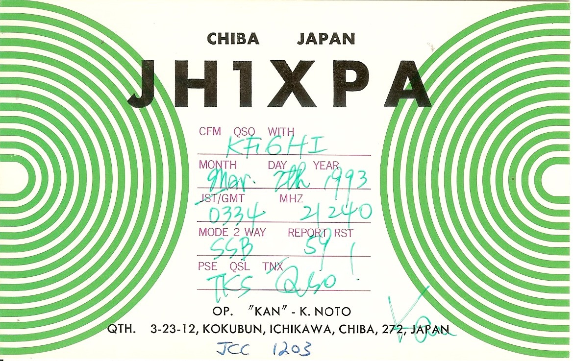 KF6HI QSO with JH1XPA (click for QRZ info), information for above highlighted contact: