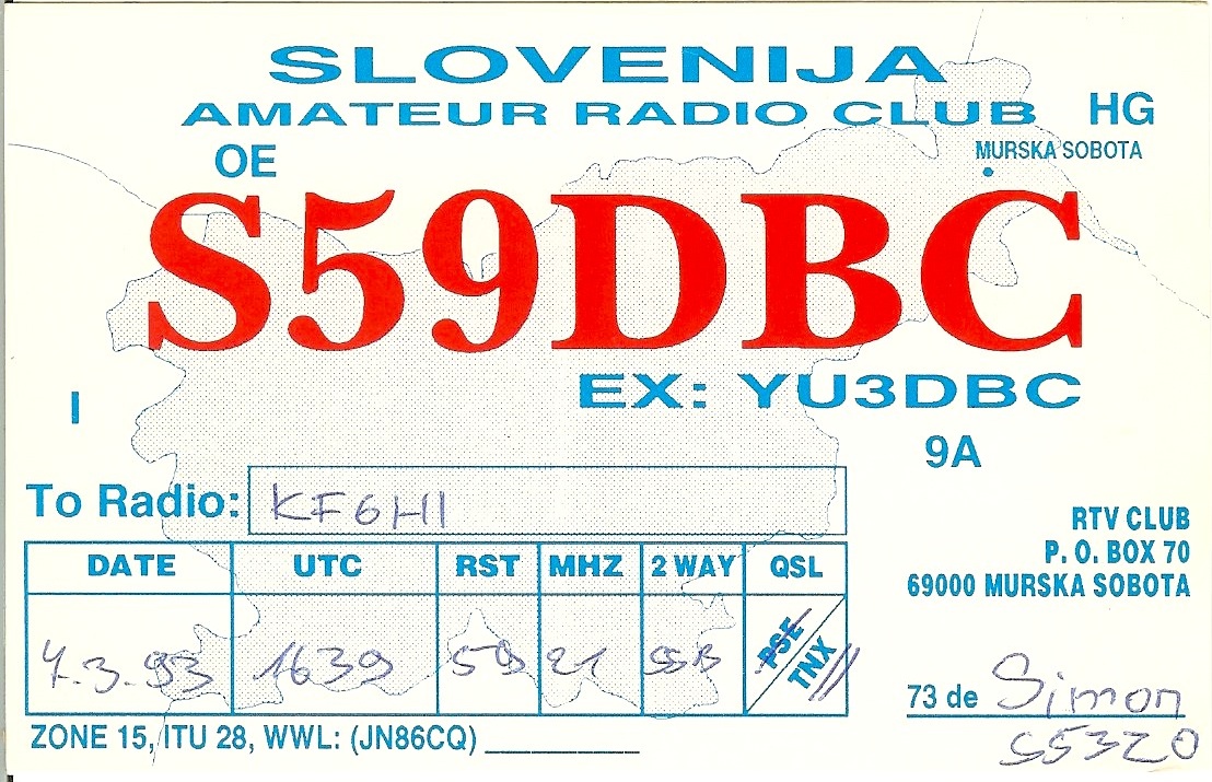 KF6HI QSO with S59DBC (click for QRZ info), information for above highlighted contact: