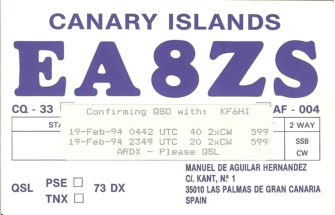 KF6HI QSO with EA8ZS (click for QRZ info), information for above highlighted contact: