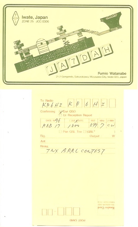 KF6HI QSO with JA7DAH (click for QRZ info), information for above highlighted contact: