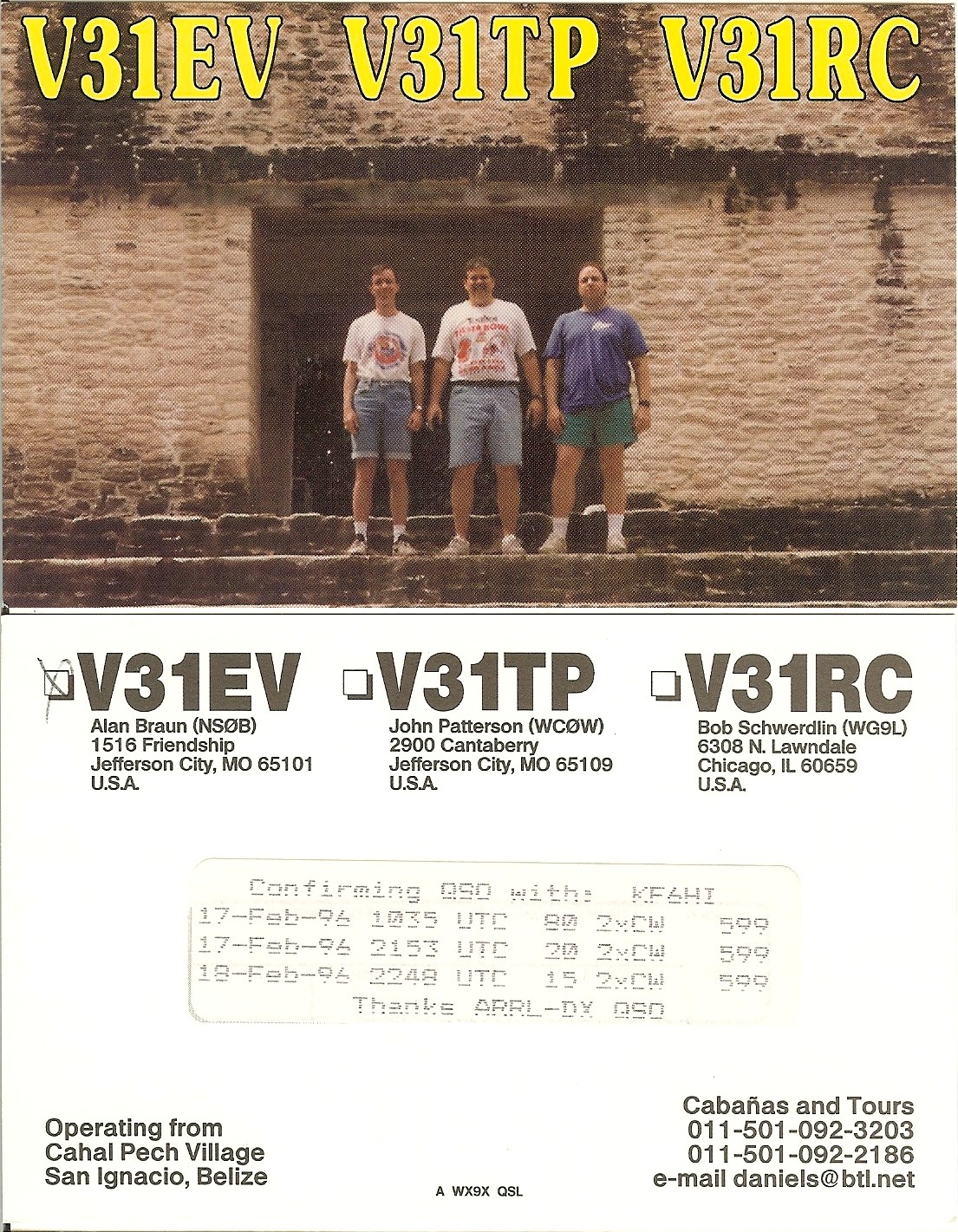 KF6HI QSO with V31EV (click for QRZ info), information for above highlighted contact: