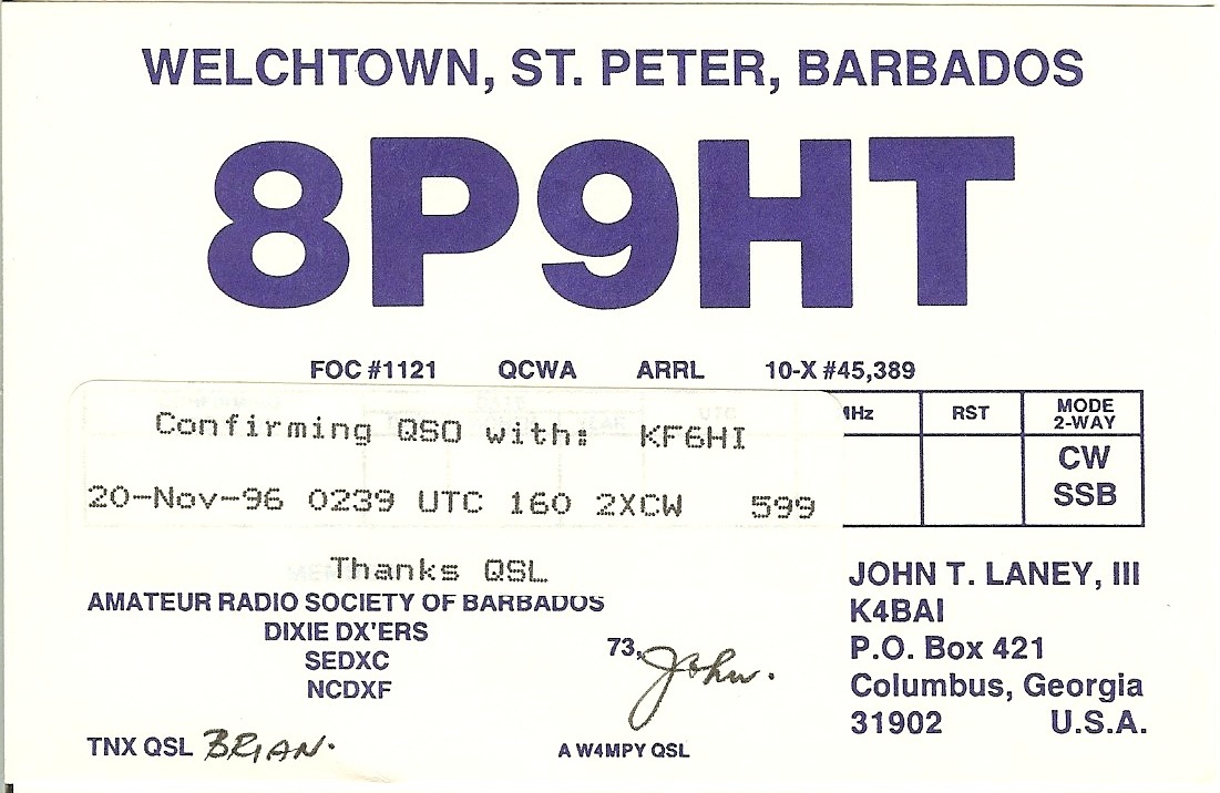Number of QSOs found on 1.8 MHz with Barbados : 3 | |||||||||||||||||||||||||||||||||