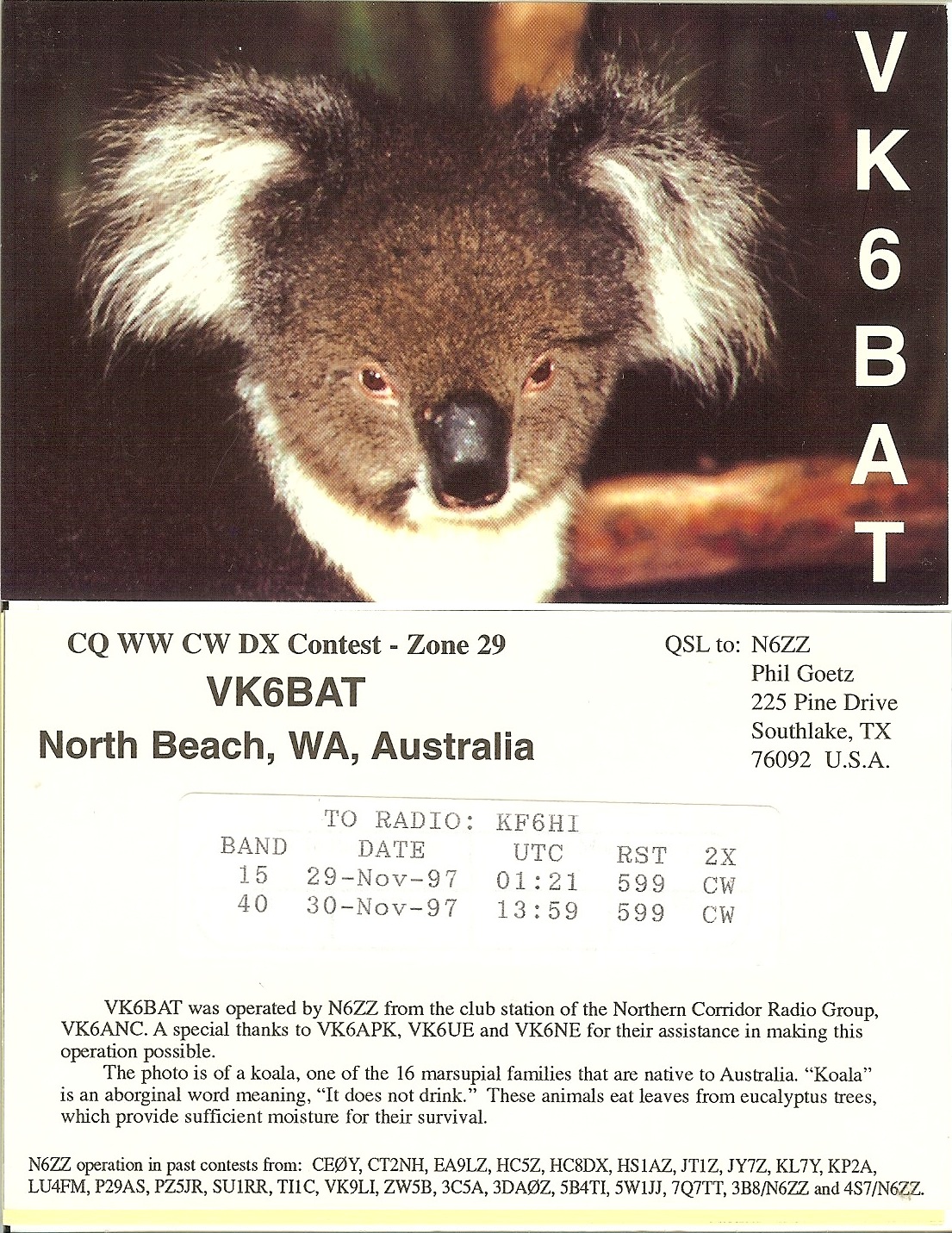 KF6HI QSO with VK6BAT (click for QRZ info), information for above highlighted contact: