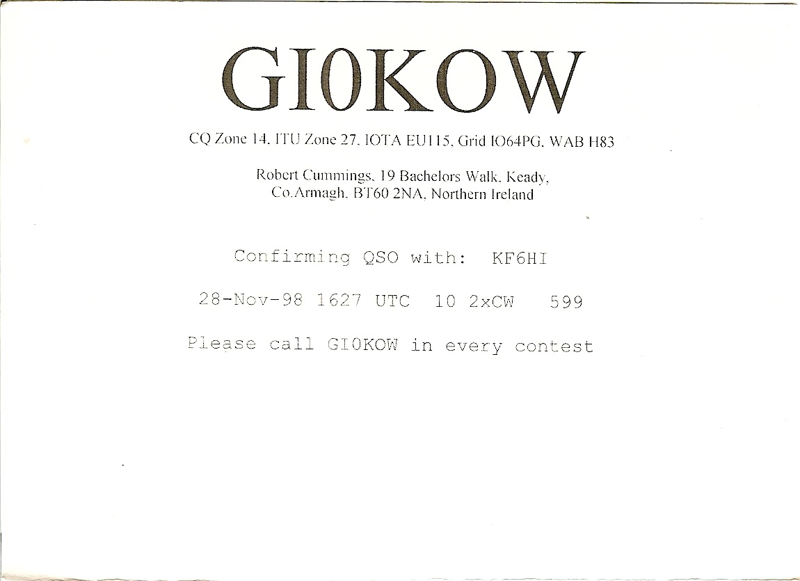 KF6HI QSO with GI0KOW (click for QRZ info), information for above highlighted contact: