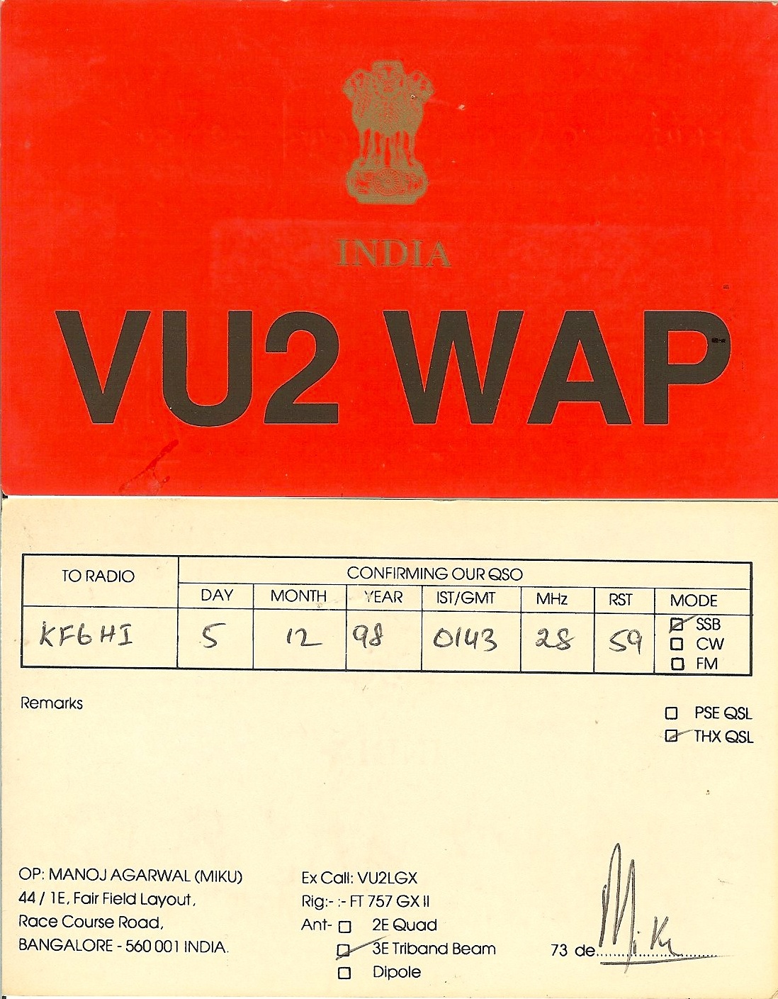 Number of QSOs found on 28 MHz with India : 1 | |||||||||||||||||