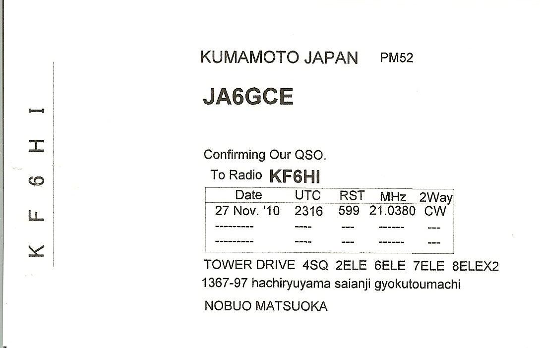 KF6HI QSO with JA6GCE (click for QRZ info), information for above highlighted contact: