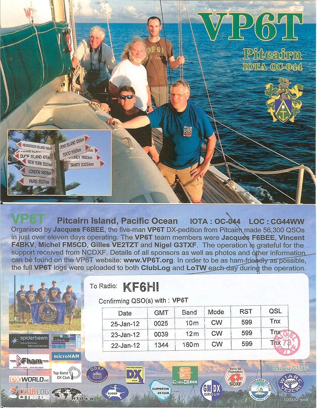 | Number of QSOs found on 24.5 MHz with Pitcairn I. : 6 | |||||||||||||||||||||||||||||||||||||||||||||||||||||||||
