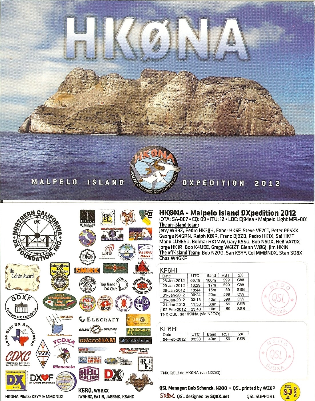 Number of QSOs found on 3.5 MHz with Malpelo I. : 2 | |||||||||||||||||||||||||