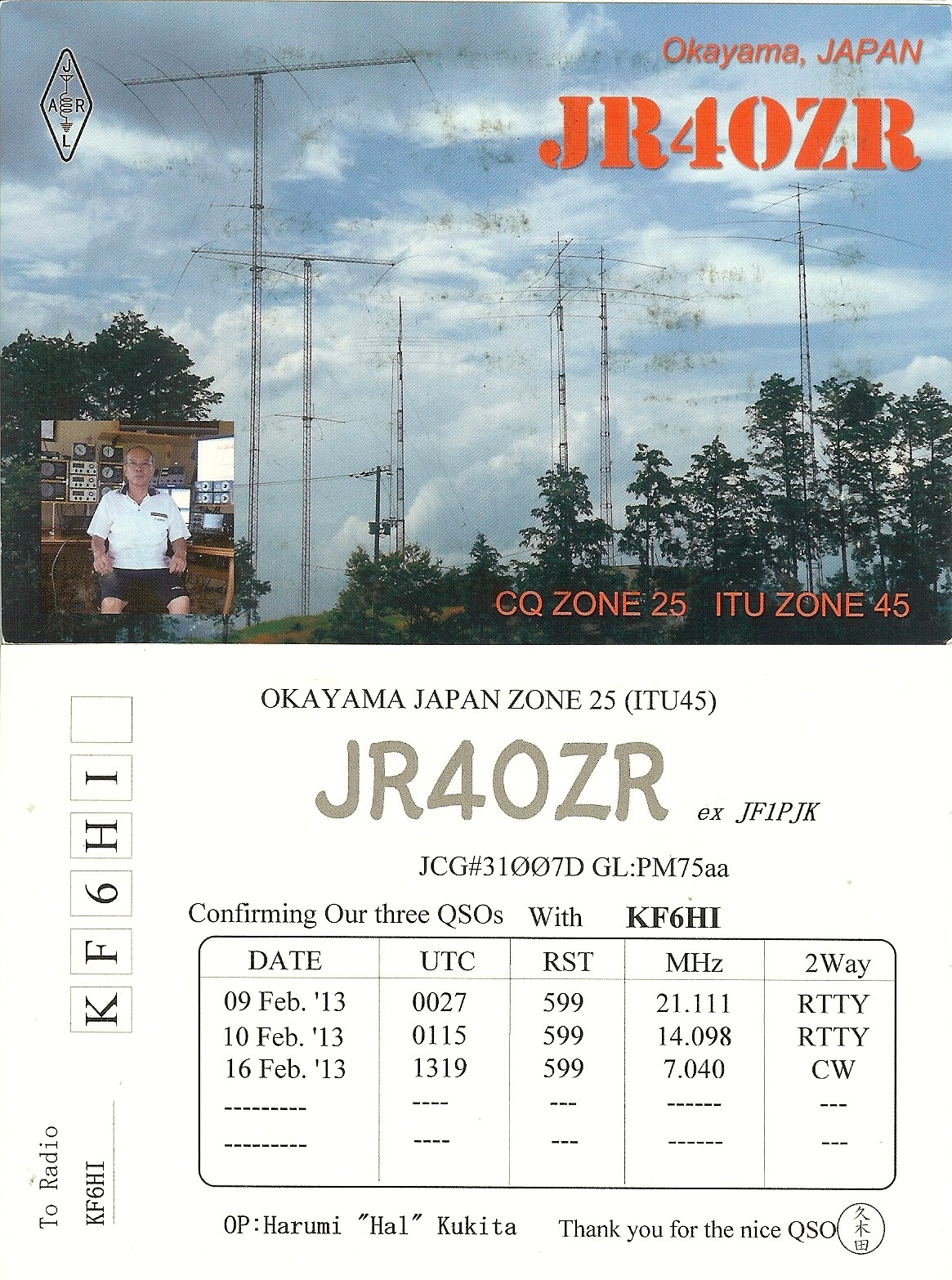 KF6HI QSO with JR4OZR (click for QRZ info), information for above highlighted contact: