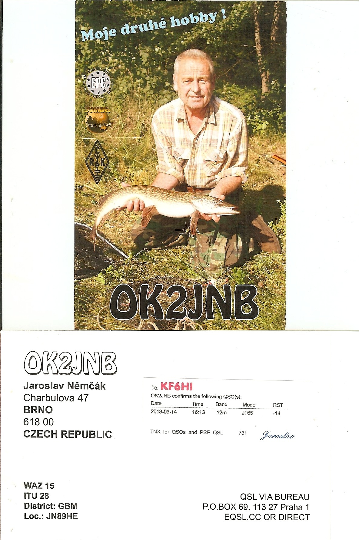 KF6HI QSO with OK2JNB (click for QRZ info), information for above highlighted contact: