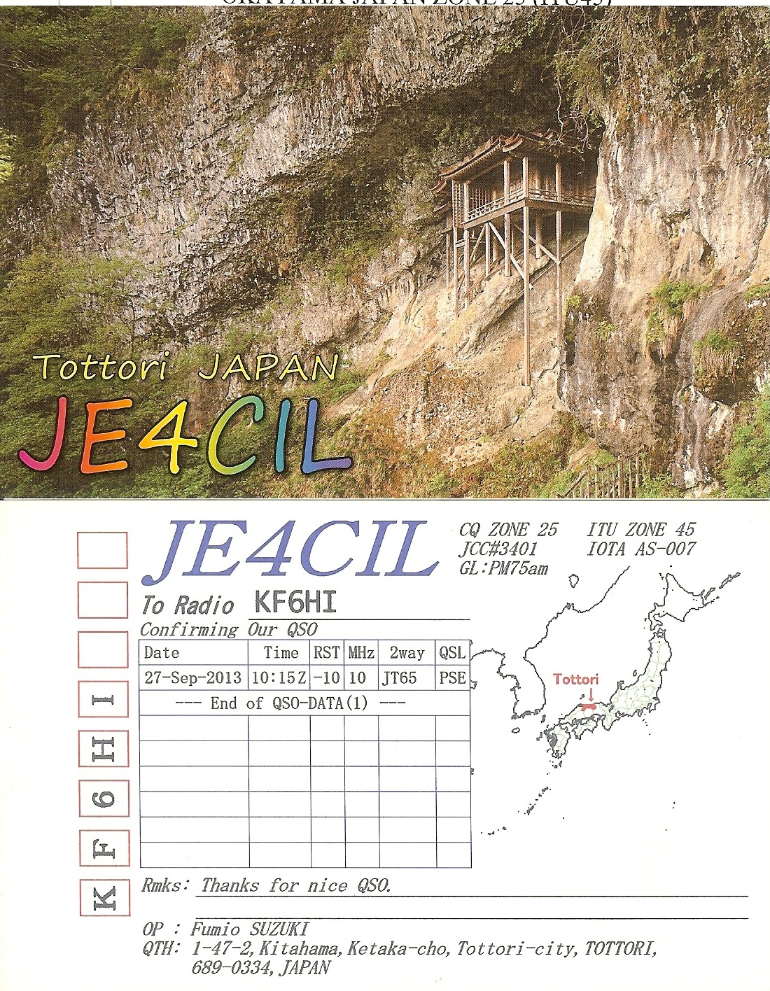 KF6HI QSO with JE4CIL (click for QRZ info), information for above highlighted contact:
