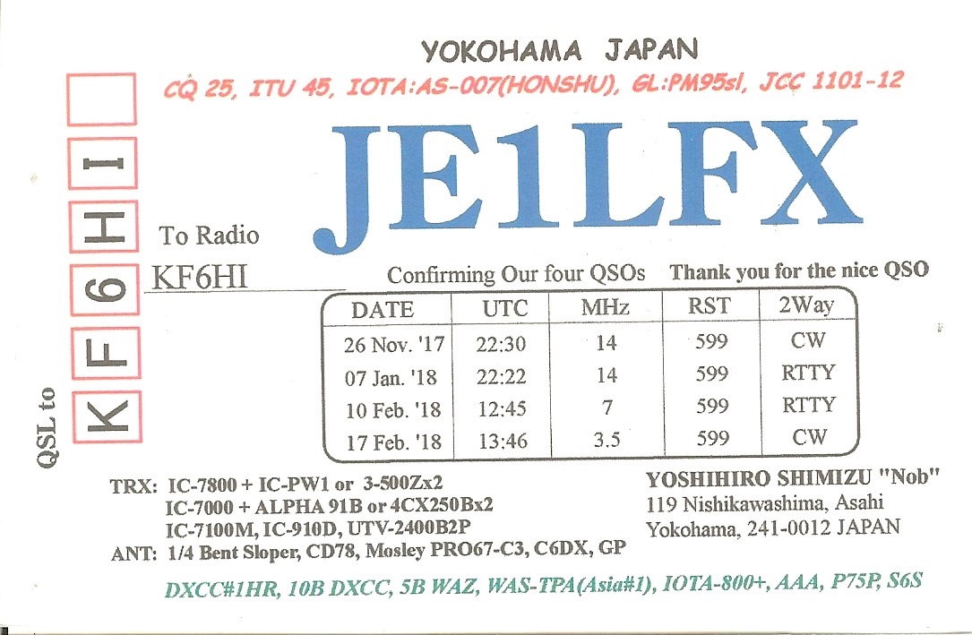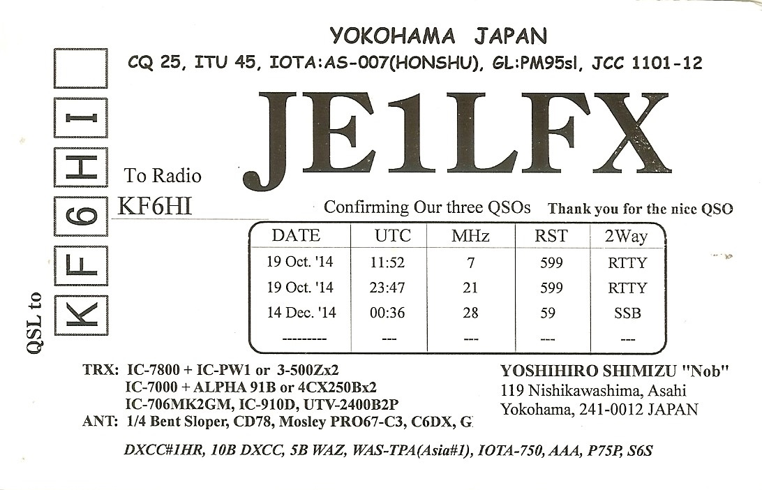 KF6HI QSO with JE1LFX (click for QRZ info), information for above highlighted contact: