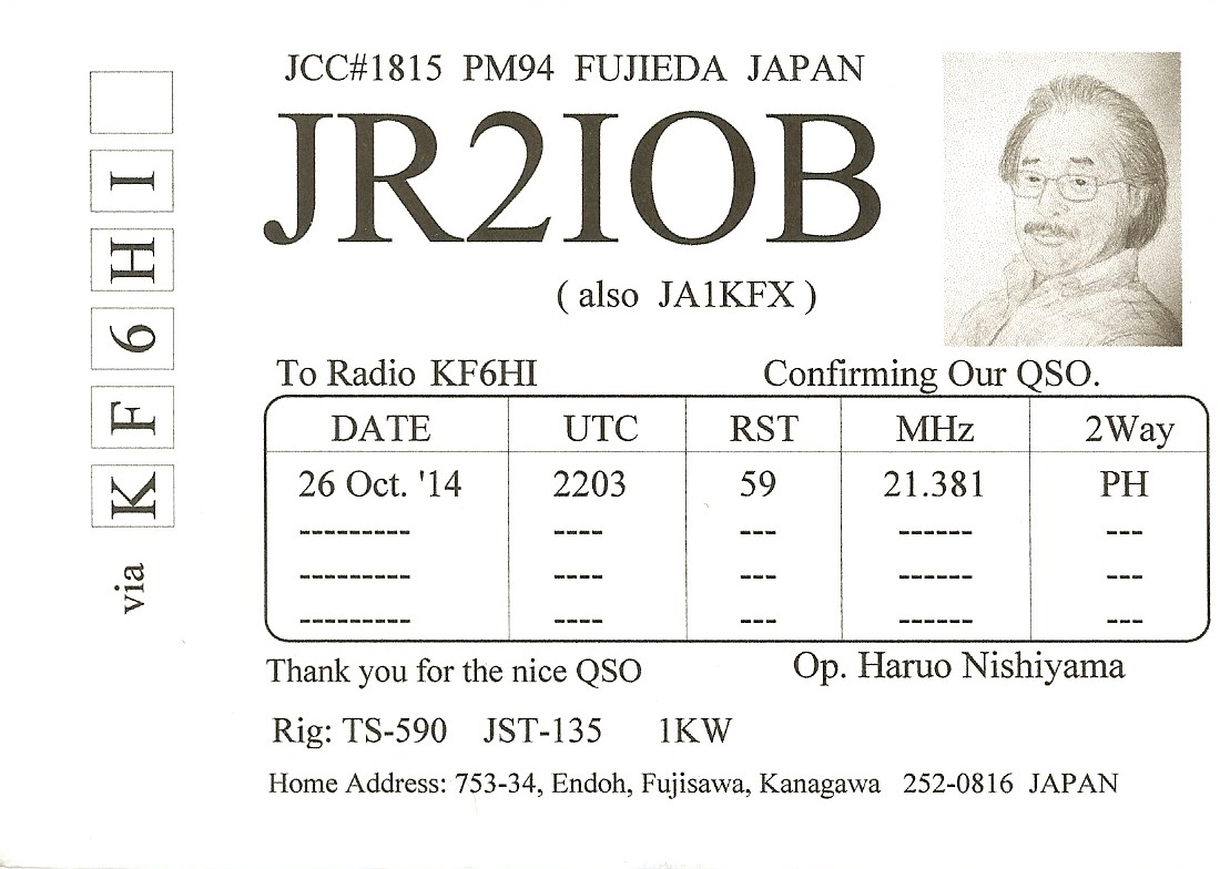 KF6HI QSO with JR2IOB (click for QRZ info), information for above highlighted contact: