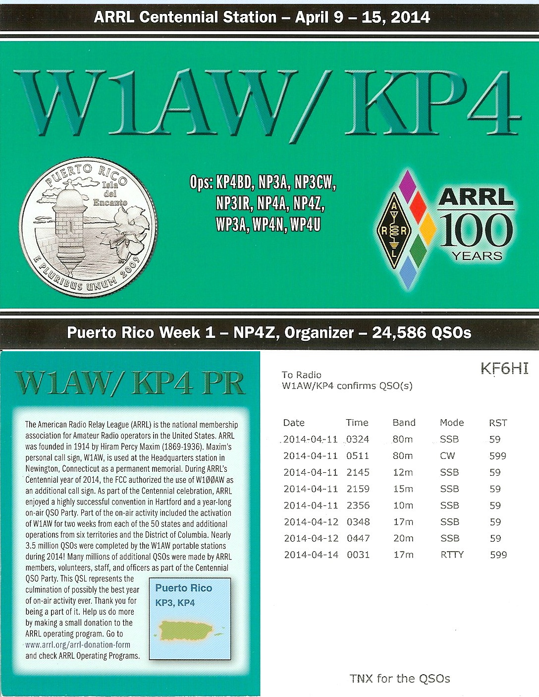 | W1AW/KP4 | 2014-04-13 | 22:59 | CW | N | N | N | N |