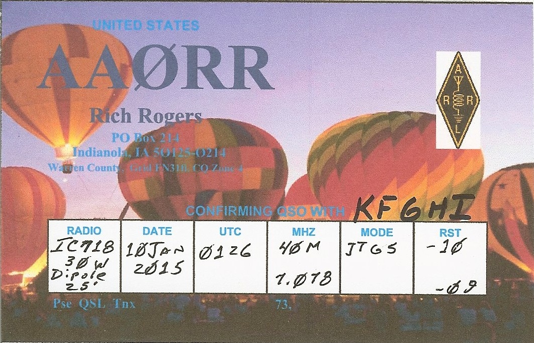 KF6HI QSO with AA0RR (click for QRZ info), information for above highlighted contact: