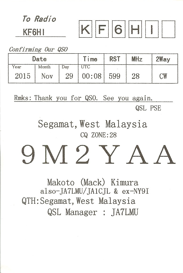 KF6HI QSO with 9M2YAA (click for QRZ info), information for above highlighted contact:
