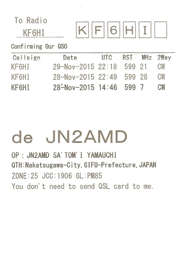KF6HI QSO with JN2AMD (click for QRZ info), information for above highlighted contact: